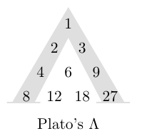 which cannot be extended in either direction using integers. In Plato’s Λ (Greek letter Lambda), each row and diagonal is a geometric sequence, and each entry is the difference of the two directly below it1.